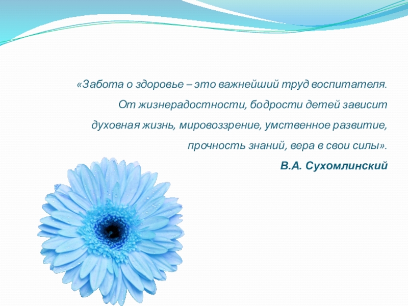 Слайд 2«Забота о здоровье – это важнейший труд воспитателя.
