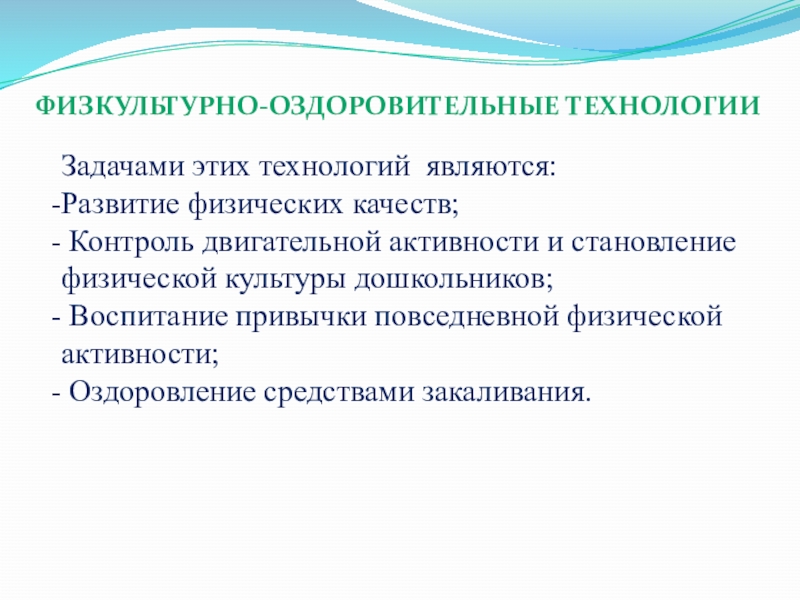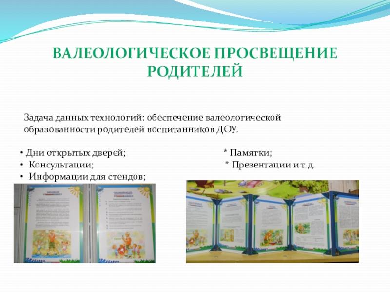 Задача данных технологий: обеспечение валеологической образованности родителей воспитанников ДОУ.