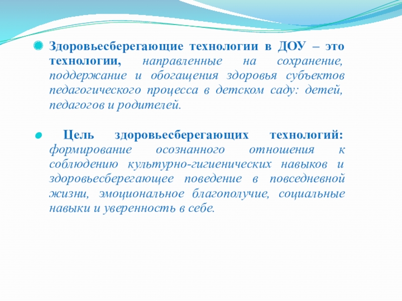 Слайд 5Здоровьесберегающие технологии в ДОУ – это технологии, направленные на сохранение, поддержание