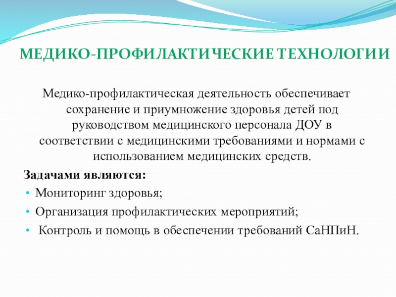 Слайд 9Медико-профилактическая деятельность обеспечивает сохранение и приумножение здоровья детей под руководством медицинского