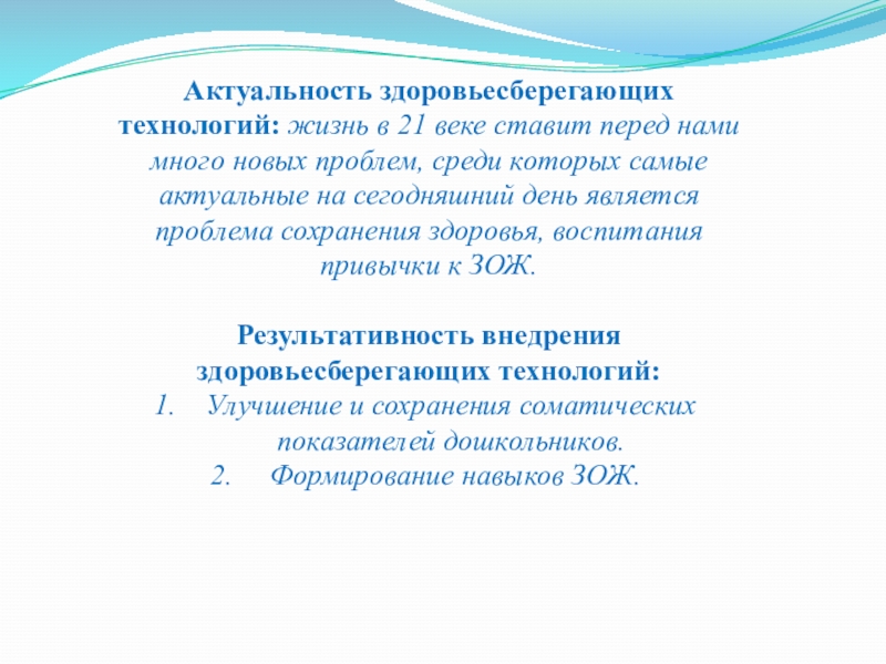 Слайд 7Актуальность здоровьесберегающих технологий: жизнь в 21 веке ставит перед нами много