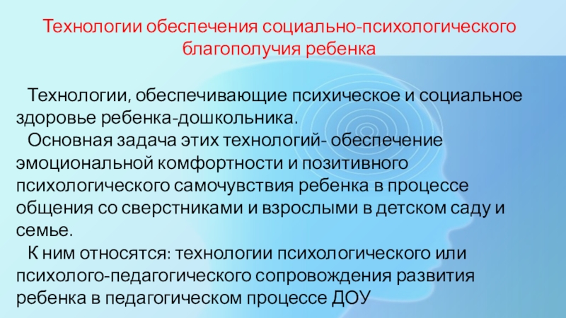 Слайд 8Технологии обеспечения социально-психологического благополучия ребенка