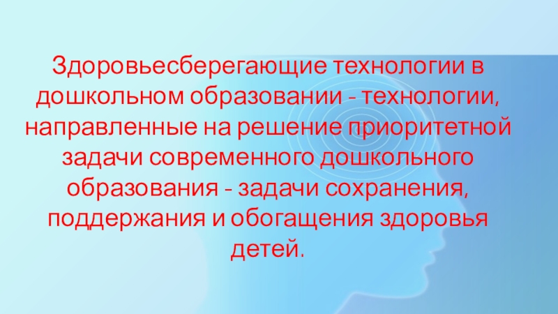 Слайд 2Здоровьесберегающие технологии в дошкольном образовании - технологии, направленные на решение приоритетной