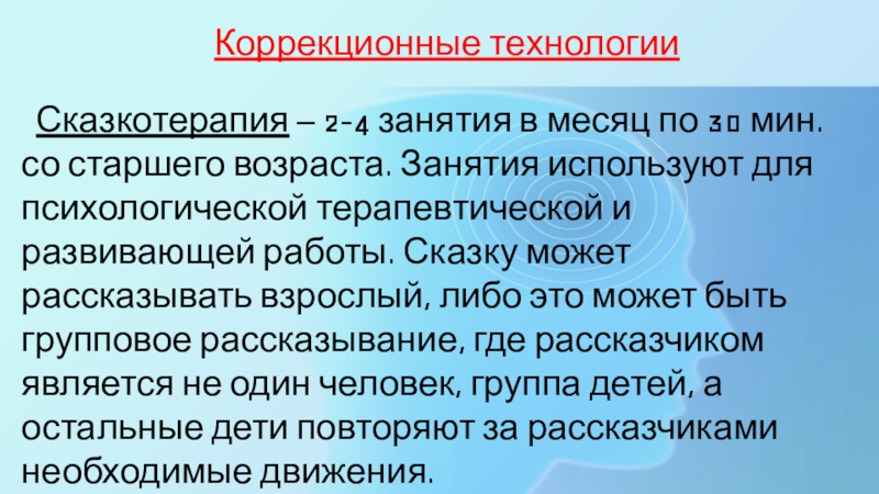 Сказкотерапия – 2-4 занятия в месяц по 30 мин.