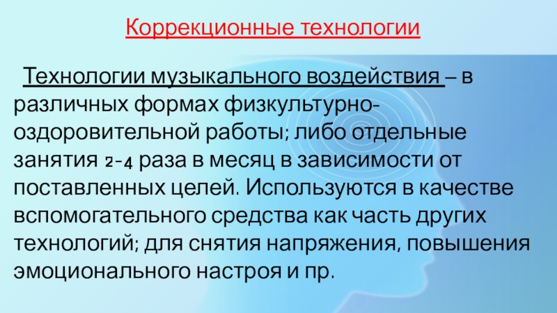 Технологии музыкального воздействия – в различных формах физкультурно-оздоровительной работы;