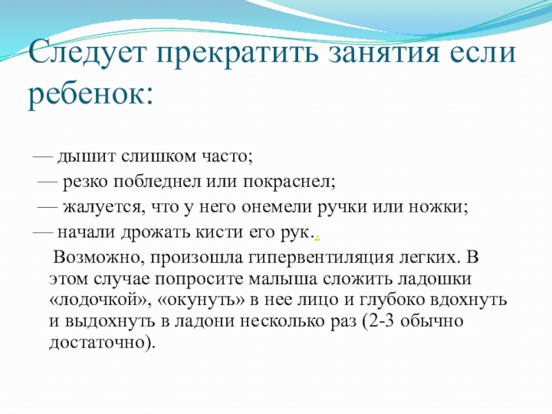 Возможно, произошла гипервентиляция легких. В этом случае попросите малыша сложить ладошки «лодочкой», «окунуть» в нее лицо и глубоко вдохнуть и выдохнуть в ладони несколько раз (2-3 обычно достаточно).