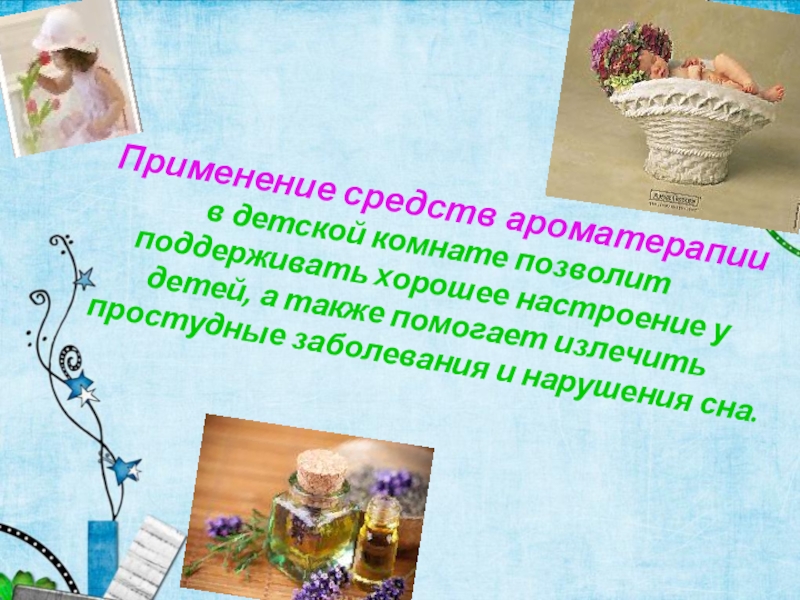 Слайд 25Применение средств ароматерапии в детской комнате позволит поддерживать хорошее настроение у