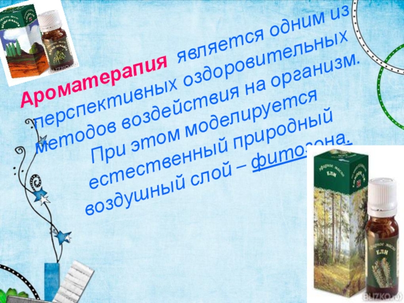 Слайд 18Ароматерапия является одним из перспективных оздоровительных методов воздействия на организм. При
