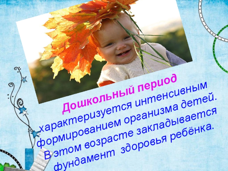 Слайд 29Дошкольный период характеризуется интенсивным формированием организма детей. В этом возрасте закладывается