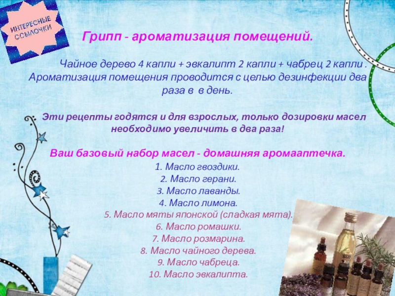 Слайд 27Грипп - ароматизация помещений.