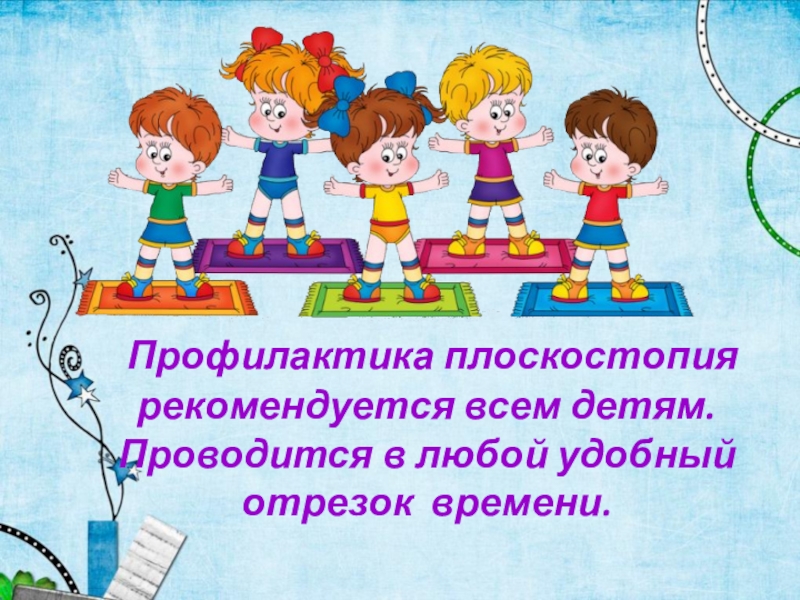 Слайд 16 Профилактика плоскостопия рекомендуется всем детям.