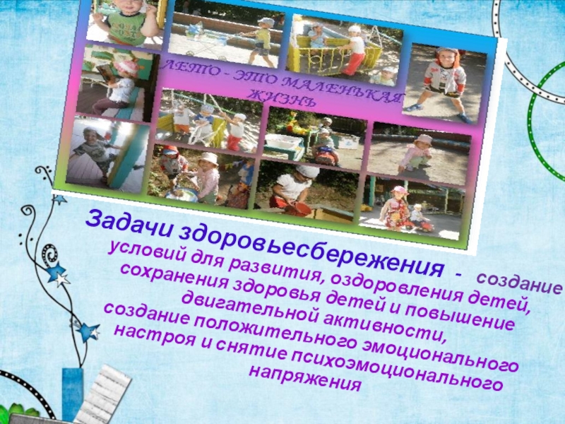Слайд 5Задачи здоровьесбережения - создание условий для развития, оздоровления детей,