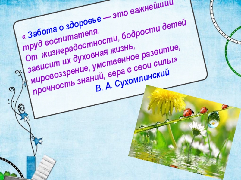 Слайд 2 « Забота о здоровье — это важнейший труд воспитателя.