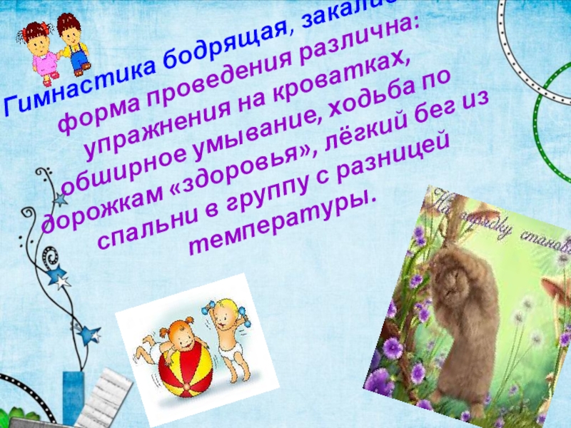 Слайд 14Гимнастика бодрящая, закаливание