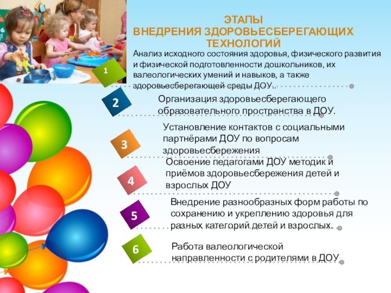 Внедрение научно-методических подходов к организации работы по сохранению здоровья детей, к созданию здоровьесберегающего образовательного пространства в ДОУ и семьи