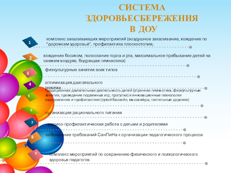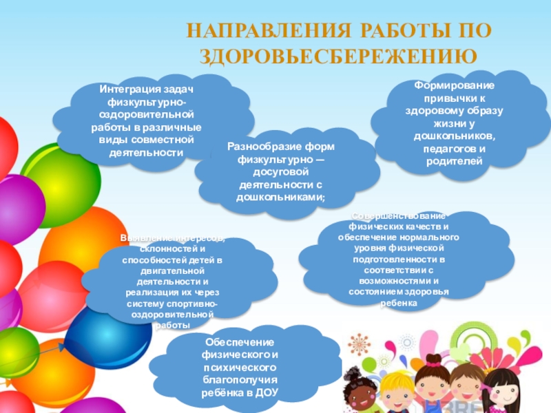 Внедрение разнообразных форм работы по сохранению и укреплению здоровья для разных категорий детей и взрослых.