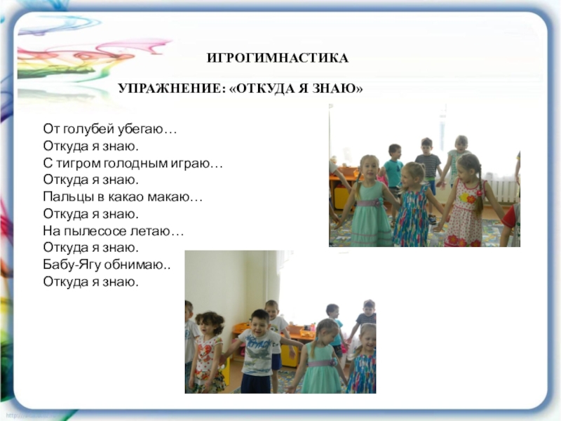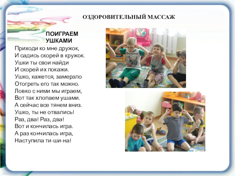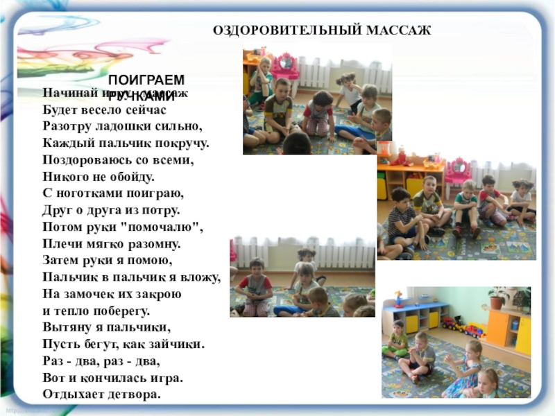 головой) Чтоб окошко было в нём, (Пальчики обеих рук соединить в кружочек) Чтоб у дома дверь была, (Ладошки рук соединяем вместе вертикально) Рядом чтоб сосна росла. (Одну руку поднимаем вверх и "растопыриваем" пальчики) Чтоб вокруг забор стоял, Пёс ворота охранял, (Соединяем руки в замочек и делаем круг перед собой) Солнце было, дождик шёл, (Сначала поднимаем руки вверх, пальцы "растопырены". Затем пальцы опускаем вниз, делаем "стряхивающие" движения) И тюльпан в саду расцвёл! (Соединяем вместе ладошки и медленно раскрываем пальчики - "бутончик тюльпана")