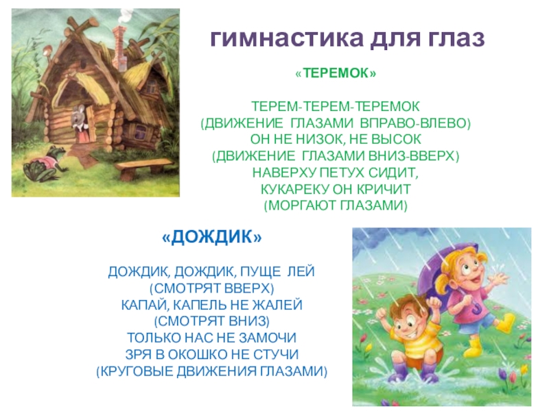 Гимнастика для глаз – ежедневно по 3-5 мин. в любое свободное