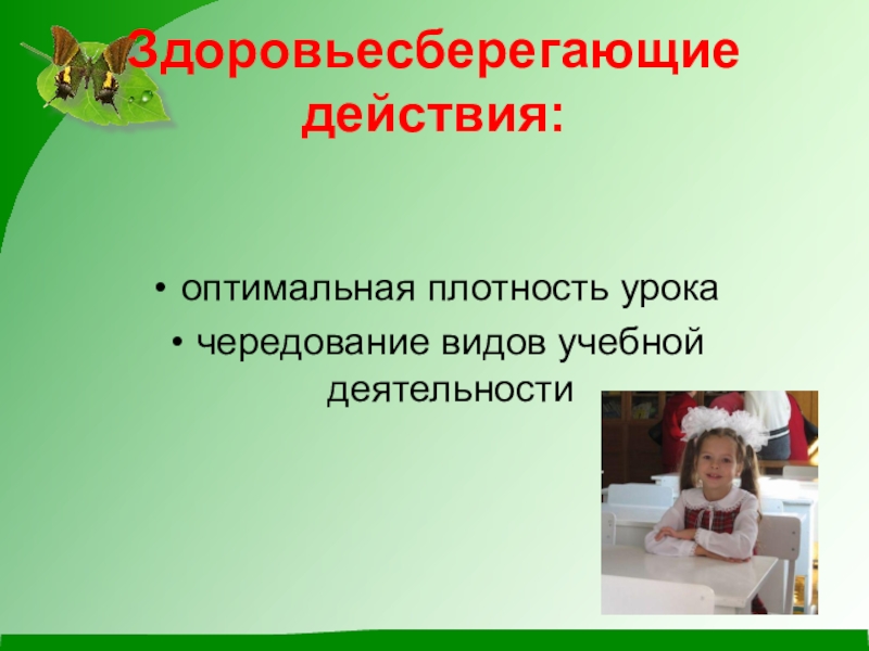 Слайд 9Здоровьесберегающие действия: