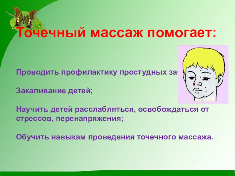 Обучить навыкам проведения точечного массажа.
