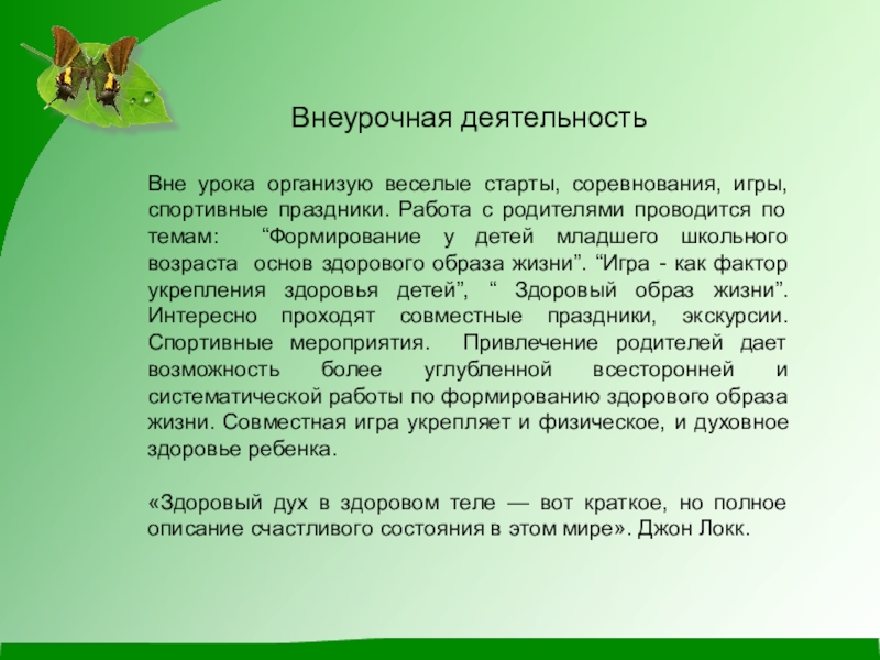 «Здоровый дух в здоровом теле — вот краткое, но полное описание счастливого состояния в этом мире». Джон Локк.