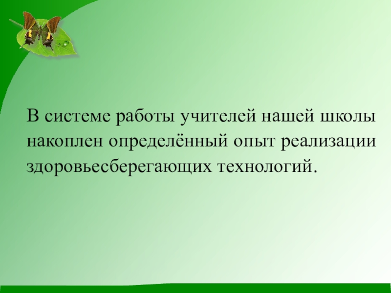 Слайд 4В системе работы учителей нашей школы накоплен определённый опыт реализации здоровьесберегающих