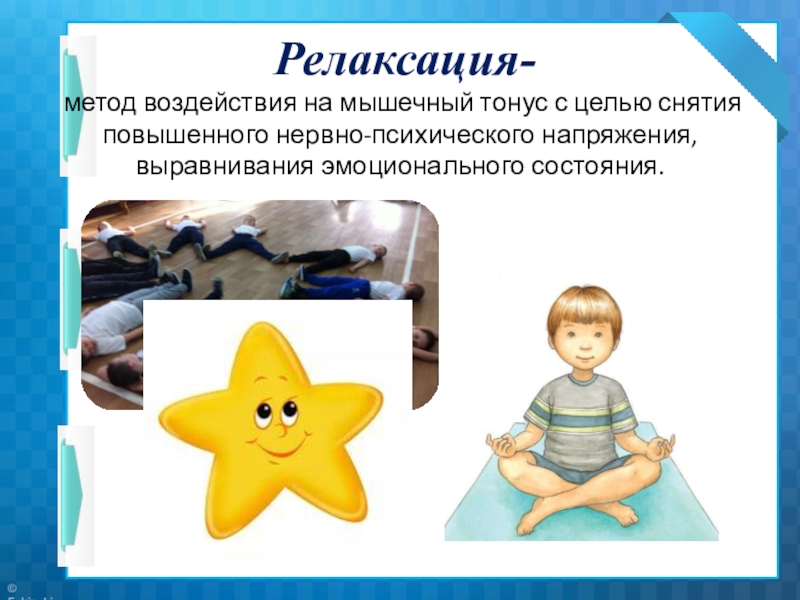 Слайд 11 Релаксация- метод воздействия на мышечный тонус с целью снятия повышенного
