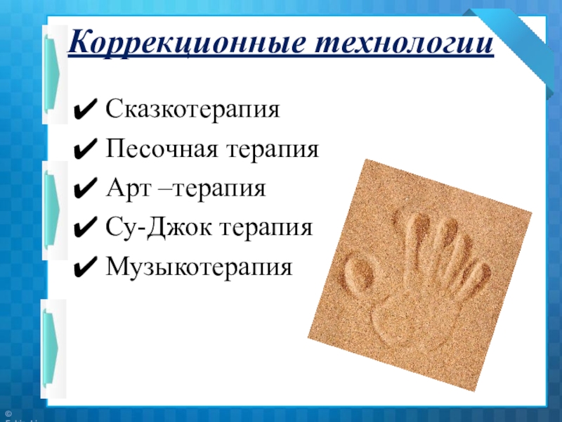 Коррекционные технологииСказкотерапияПесочная терапияАрт –терапияСу-Джок терапияМузыкотерапия