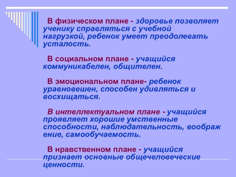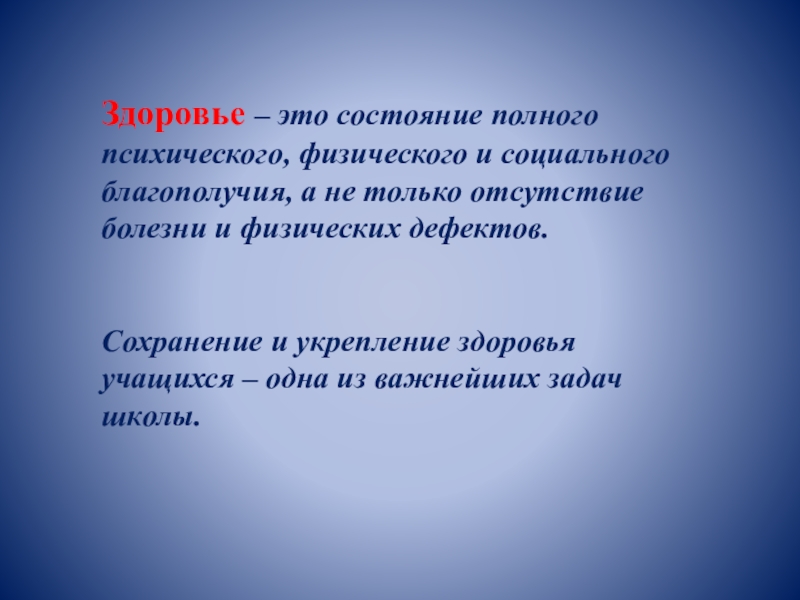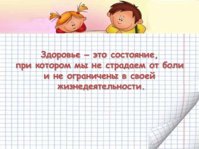 Здоровье – это состояние полного психического, физического и социального благополучия, а не только отсутствие болезни и физических