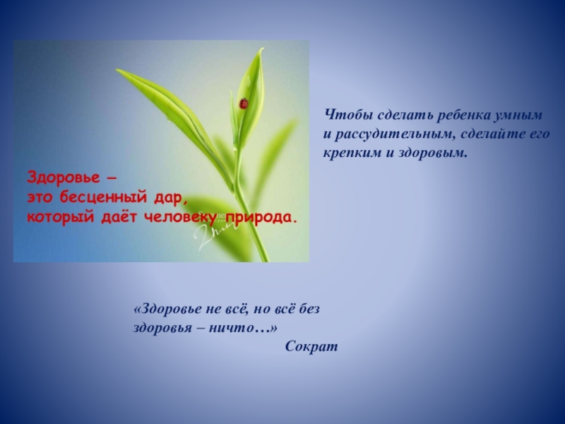 Слайд 2Чтобы сделать ребенка умным и рассудительным, сделайте его крепким и здоровым.