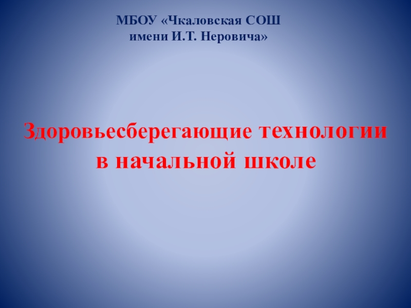 Здоровьесберегающие технологии  в начальной школеМБОУ «Чкаловская СОШ  имени И.Т. Неровича»