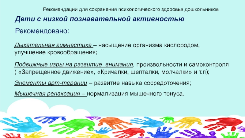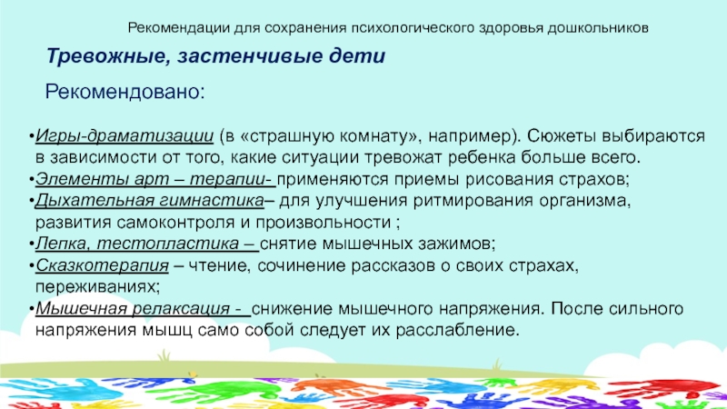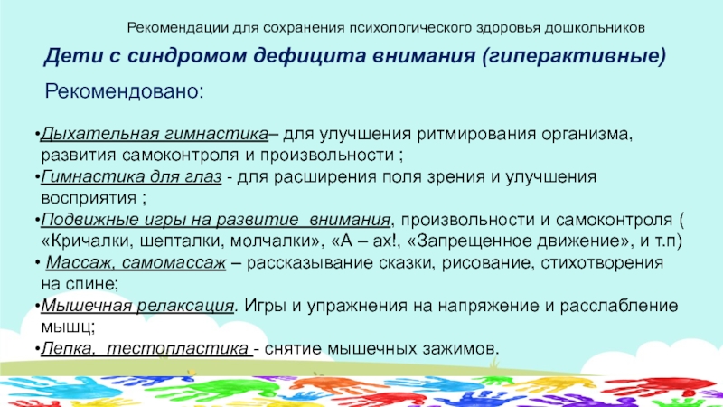 Рекомендуется при следующих нарушениях психического здоровья дошкольников: