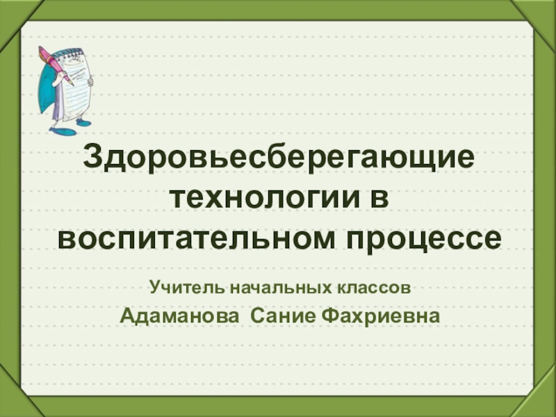 Здоровьесберегающие технологии в воспитательном процессеУчитель начальных классов Адаманова Сание Фахриевна