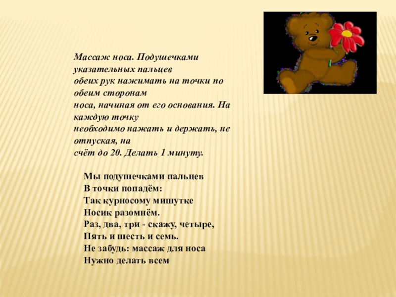 Слайд 14Массаж носа. Подушечками указательных пальцев