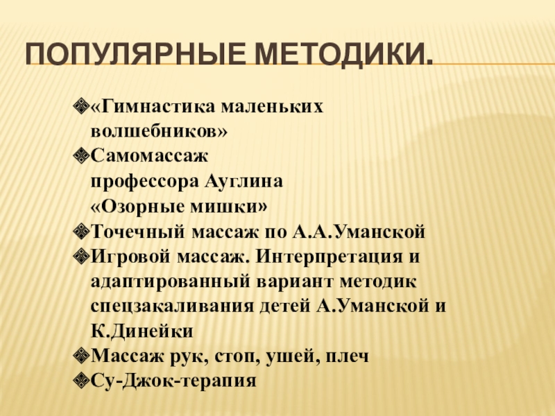 и адаптированный вариант методик спецзакаливания детей А.Уманской и К.Динейки