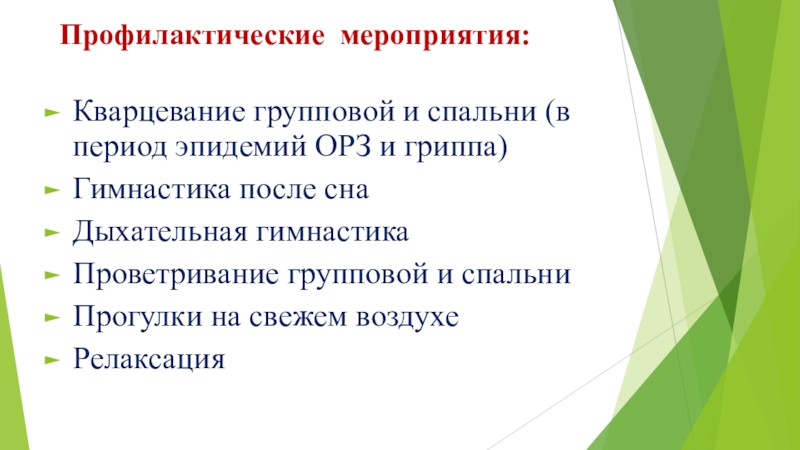 Кварцевание групповой и спальни (в период эпидемий ОРЗ и