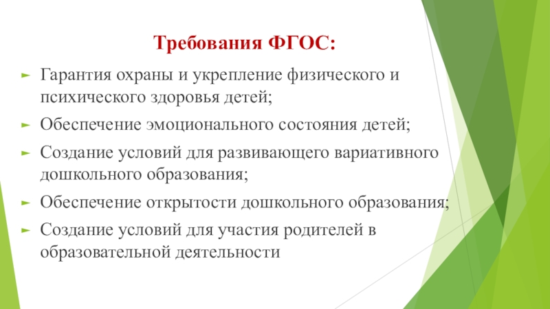 Гарантия охраны и укрепление физического и психического здоровья детей;