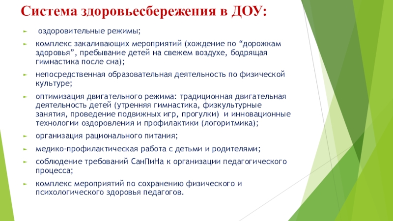 “дорожкам здоровья”, пребывание детей на свежем воздухе, бодрящая гимнастика после сна);