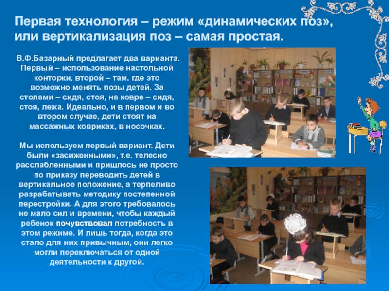 Первая технология – режим «динамических поз», или вертикализация поз – самая простая.