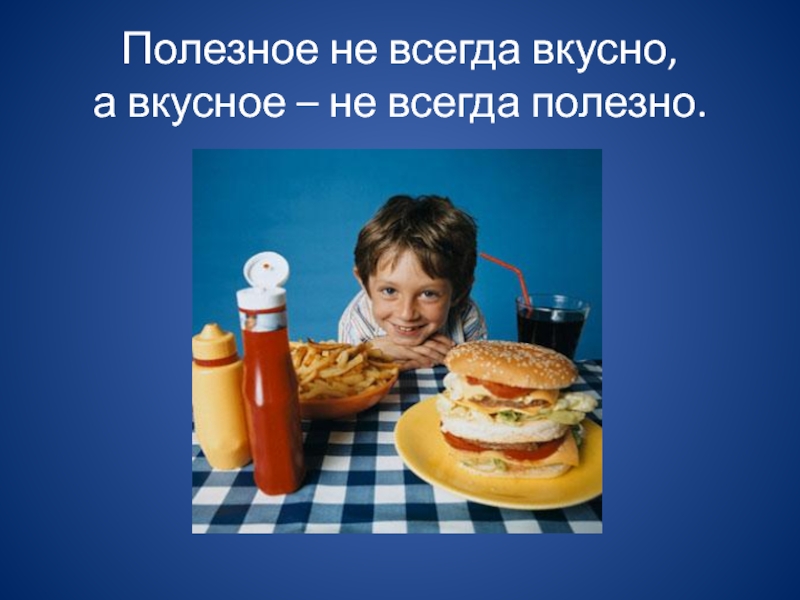 Слайд 2Полезное не всегда вкусно, а вкусное – не всегда полезно.