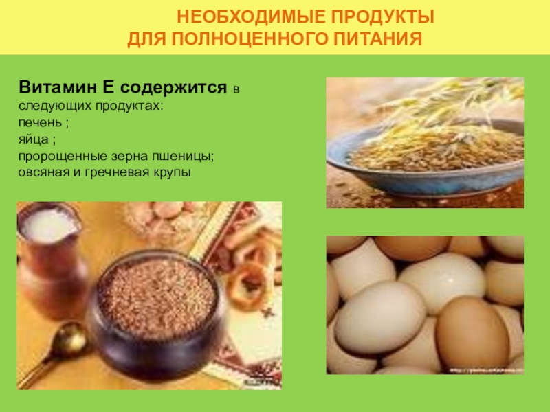 Витамин Е содержится в следующих продуктах: