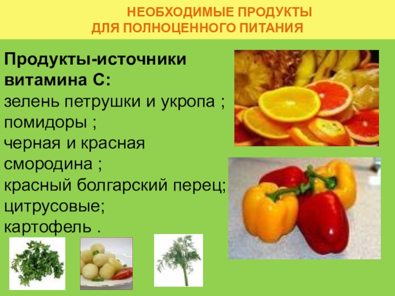 Продукты-источники витамина С: