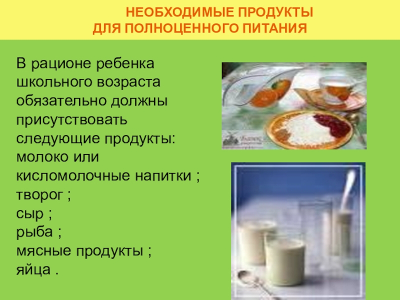 В рационе ребенка школьного возраста обязательно должны присутствовать следующие продукты: