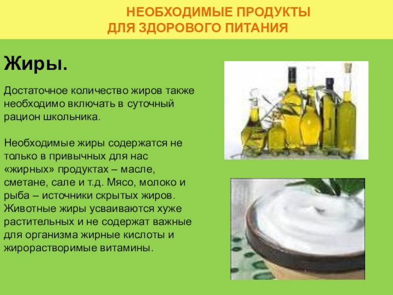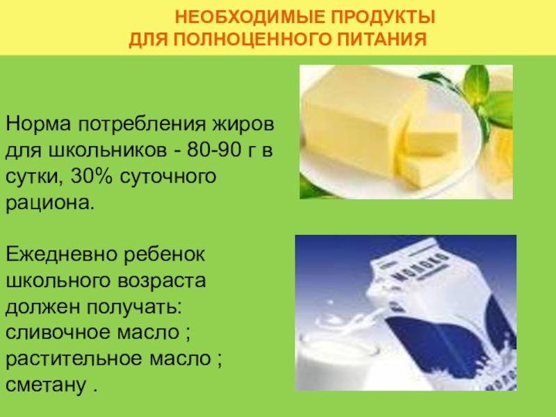 Достаточное количество жиров также необходимо включать в суточный рацион школьника.
