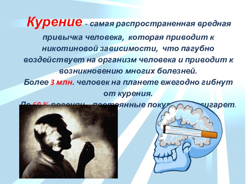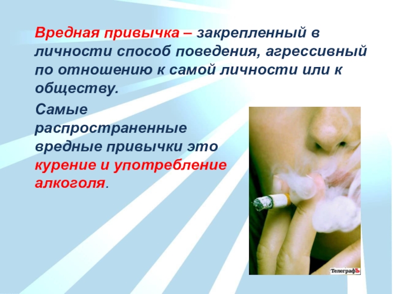 Самые распространенные вредные привычки это курение и употребление алкоголя.