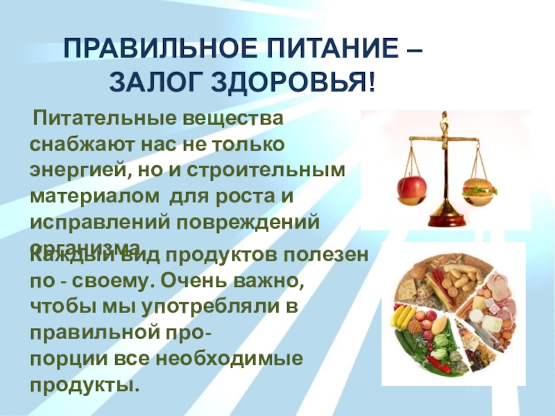 Каждый вид продуктов полезен по - своему. Очень важно, чтобы мы употребляли в правильной про-