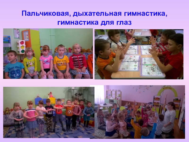 Слайд 11Пальчиковая, дыхательная гимнастика, гимнастика для глаз