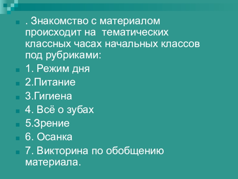 Слайд 2. Знакомство с материалом происходит на тематических классных часах начальных классов