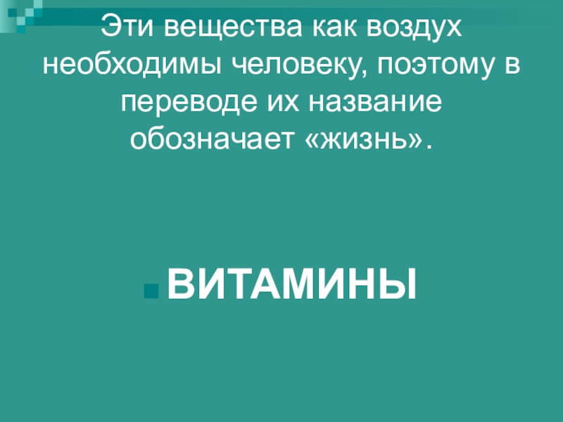 Слайд 55Эти вещества как воздух необходимы человеку, поэтому в переводе их название