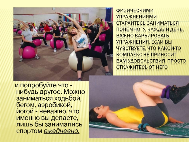 Слайд 11 и попробуйте что - нибудь другое. Можно заниматься ходьбой,